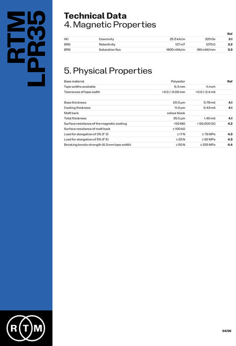 RTM LPR35 1/4" Tape - 1100m NAB Pancake 10" ; 250mm Reel Diameter